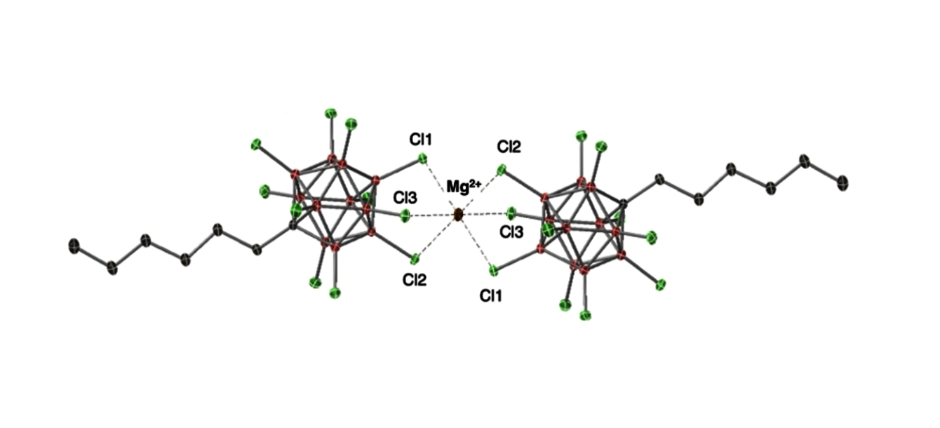 The first soluble and stable Mg2+ dication stabilized only by weakly coordinating and chemically robust carborate anions [HexCB11Cl11]− is described. Mg[HexCB11Cl11]2 (1), prepared by reaction of Mg(nBu)2 with 2 equiv of [Ph3C][HexCB11Cl11], consists, in the solid state, of a central Mg2+ surrounded by two [HexCB11Cl11]− anions. In solution, experimental and classical molecular dynamics simulations (cMD) agree with cation/anion association being retained, reflecting the high electrophilicity of the Mg center. Yet, reflecting only weak anion/cation interactions, species 1 polymerizes 1-hexene and coordinates alkynes. However, 1 displays no reaction with HSiEt3 at room temperature, consistent with a low hydridicity of the hard (HSAB) Mg2+ center. Contrasting with 1 (FIA = 264 kJ mol−1; FIA: Fluoride Ion Affinity), salt Mg[(nBu)3NB12H4Cl7]2 (2), incorporating the more basic ammoniododecaborate [(nBu)3NB12H4Cl7]− anion, is significantly less Lewis acidic (FIA = 214.7 kJ mol−1) and unreactive with alkenes and alkynes. Salt 1 effectively catalyzes alkene/alkyne hydrosilylation via an initial alkene/alkyne coordination/initiation, as suggested by experimental and computational data. It also efficiently catalyzes (with a catalyst loading down to 0.1 mol%) the hydrosilylation of CO2 to CH4 in the presence of HSiEt3. Salt 1 smoothly promotes the catalytic transfer hydrogenation of 1,1-diphenylethylene, and it is also an active imine hydrogenation catalyst in the presence of H2.