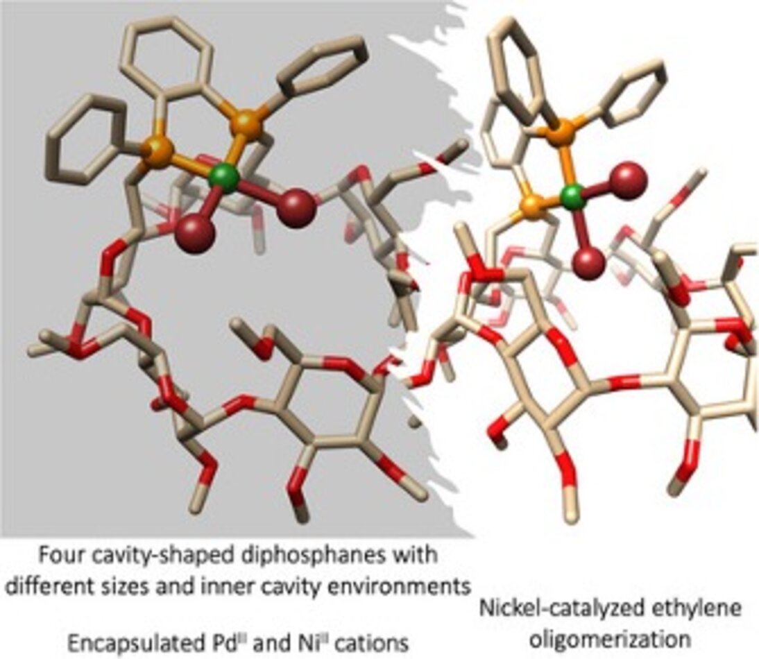Four cavity-shaped diphosphanes have been synthesized from both α- and β-cyclodextrins. The metal-confining properties of these ligands were exploited in nickel-catalyzed ethylene oligomerization.