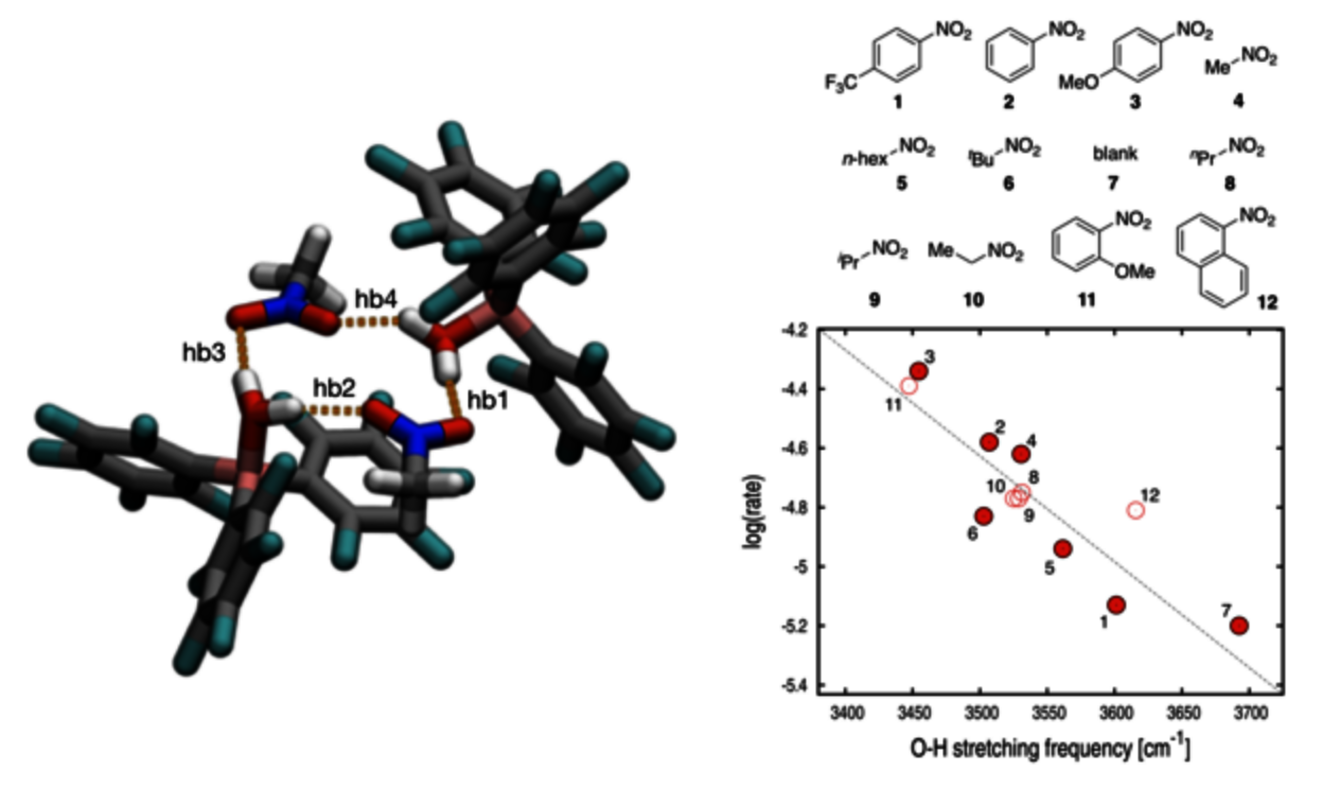 Nitro compounds are known to change reaction rates and kinetic concentration dependence of Brønsted‐acid‐catalyzed reactions. Yet, no mechanistic model exists to account for these observations. Herein we present an atomistic model for the catalytically active form for an alcohol dehydroazidation reaction, generated by DFT calculations. which consists of an H‐bonded aggregate of two molecules of Brønsted acid and two molecules of nitro compound. The computed O‐H stretching frequencies for the aggregate indicate they are stronger acids than the individual acid molecules and serve as excellent predictors for experimental reaction rates. Applying the model to a chemically diverse set of potential promoters, we predicted and verified experimentally that sulfate esters induce a similar co‐catalytic effect. The important implication is that Brønsted‐acid catalysis must be viewed from a supramolecular perspective that accounts for not only the pKa of the acid and the bulk properties of a solvent, but also the weak interactions between all molecules in solution.