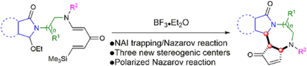 Abstract N-Acyliminium ions generated from enamidyl vinyl ketones provided cyclopentenoid-fused diazepines diastereoselectively using BF3·Et2O in one pot through a domino N-acyliminium ion trapping/Nazarov reaction, simultaneously generating three new stereogenic centers. The particular structural…